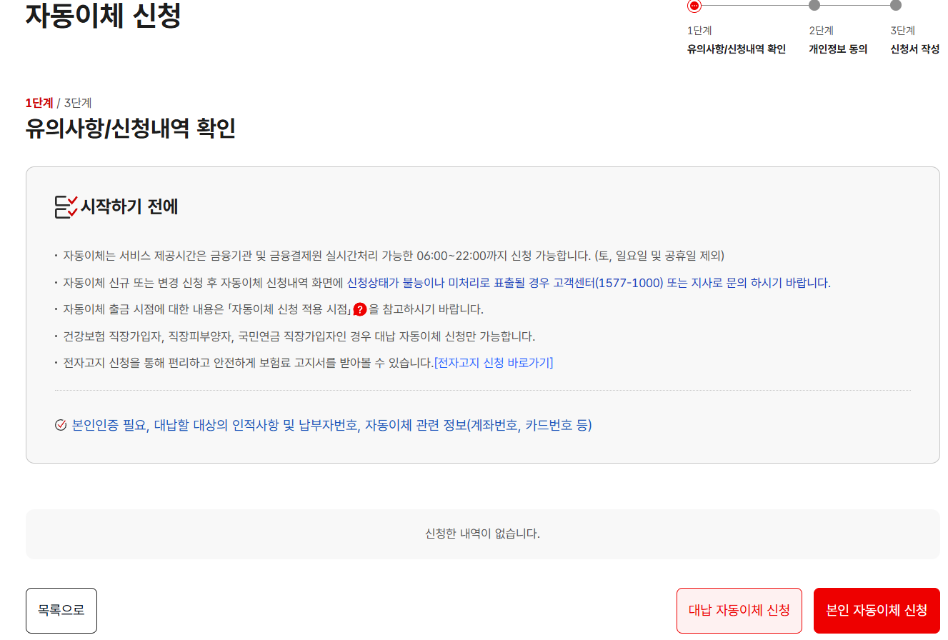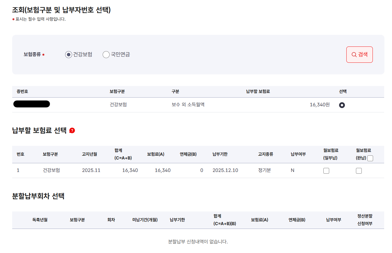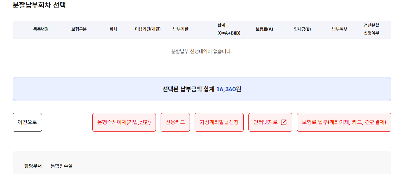 저는 첫회차부터 자동이체를 할 생각이어서 이 화면에서 건보료를 납부하지 않았습니다.