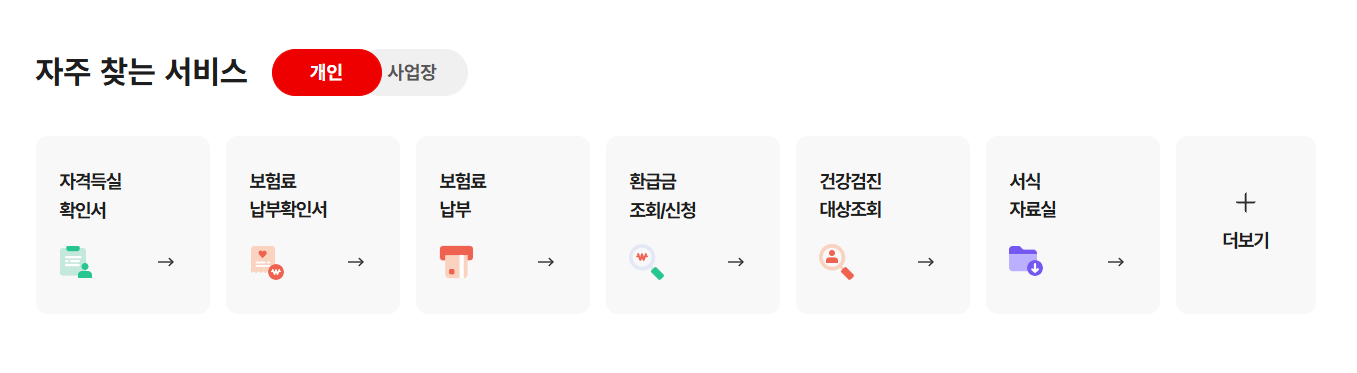 보수 외 소득월액 납부를 위해 국민건강 보험공단 홈페이지로 들어갑니다.
