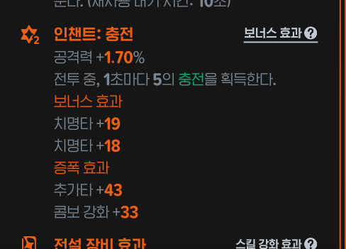 | 콤보 강화 | 33~58 (범위간 간격 : 5) |