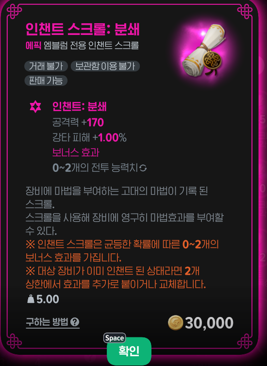 마비노기 모바일 인챈트 증폭 방법, 옵션