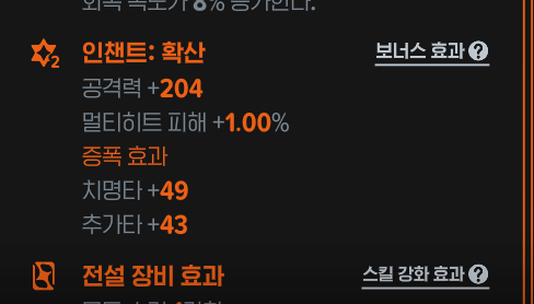 2차 증폭에서는 첫번째 기본효과와 1차에서 추가된 옵션이 강화되며 2번째 추가 옵션이 1개 붙습니다.