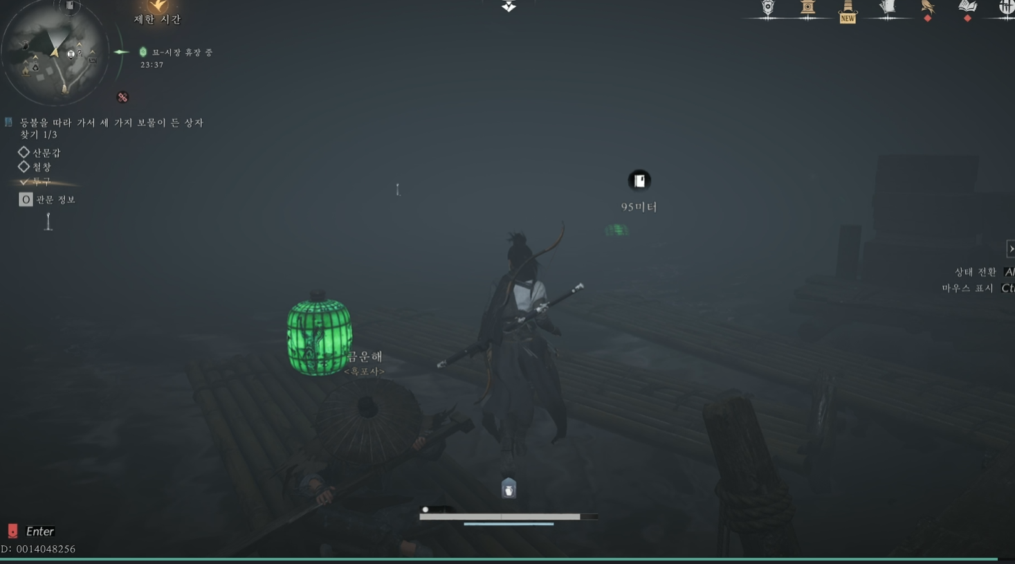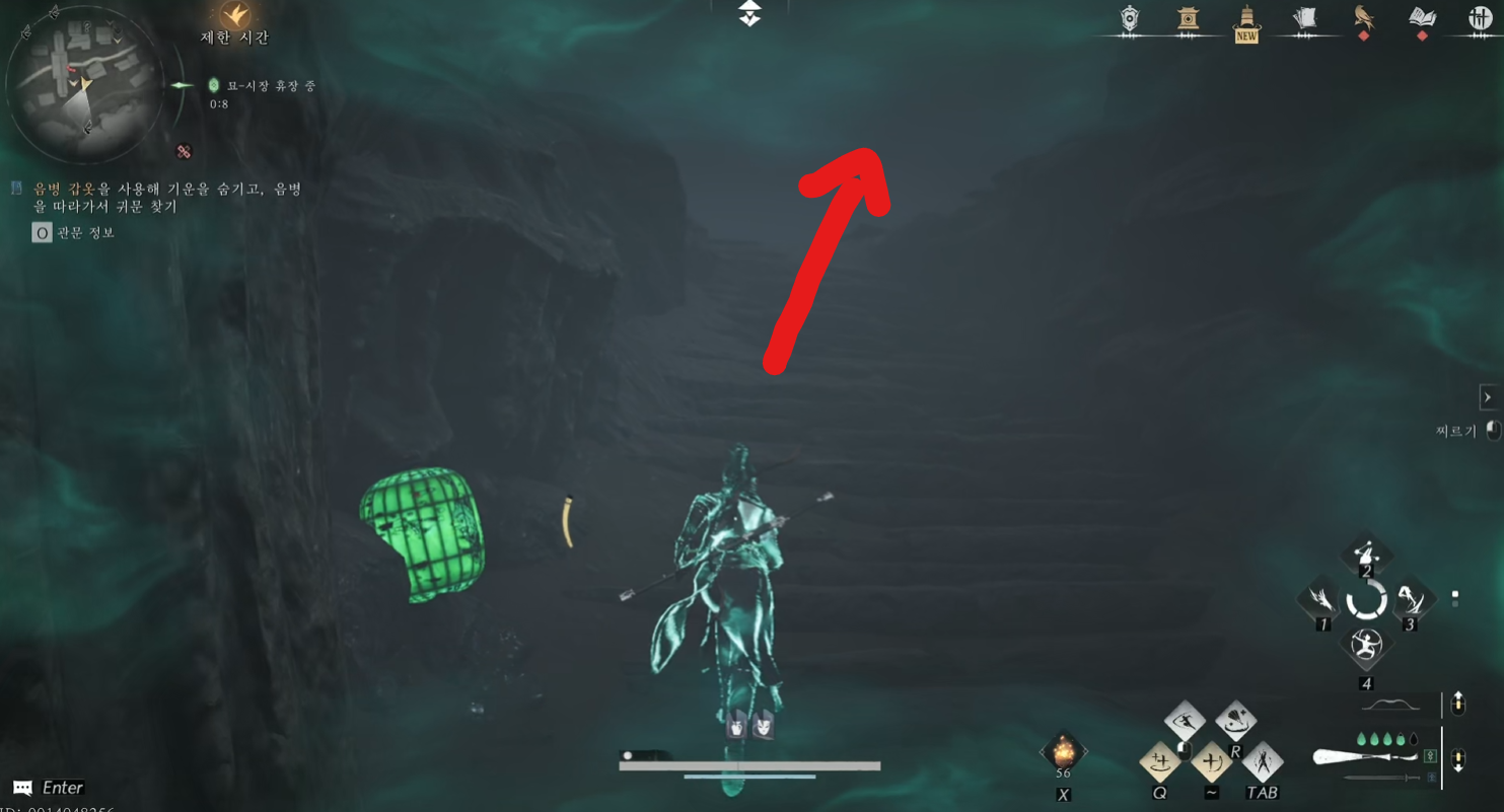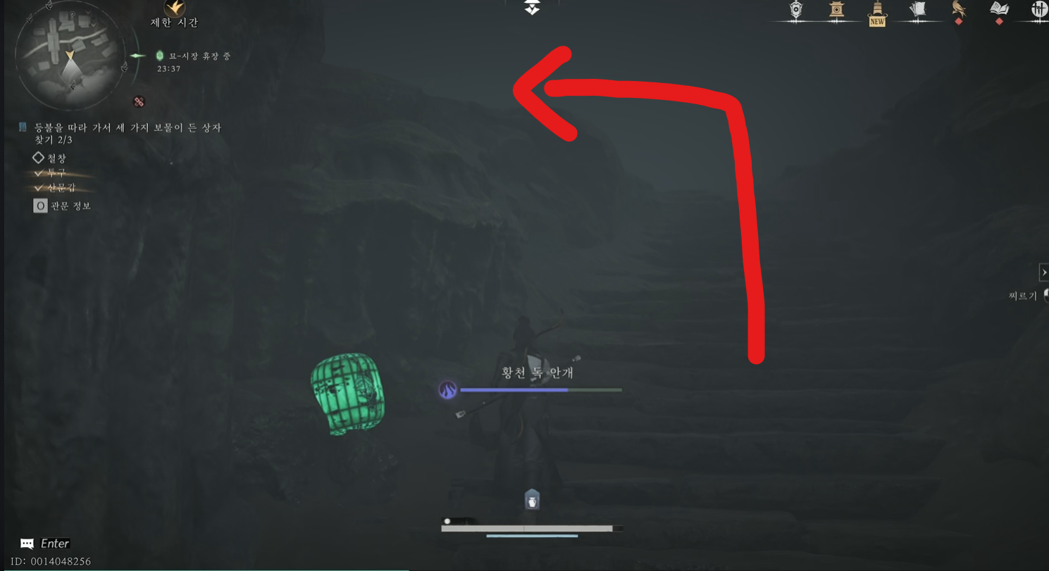 최초 투구를 얻는 길을 따라 갈 때 왼쪽을 계속 보면서 가면 흐릿하게 초록색 등이 보일 것입니다.