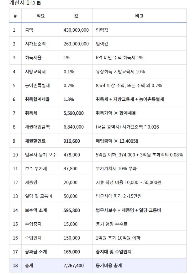 견적은 법무통이나 부동산 계산기를 이용해서 계산해볼 수 있고 견적은 각 법무사 사무실에 직접 요청하거나 법무통을 이용하여 견적을 요청할 수 있습니다.