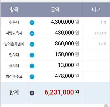 모두 분양권 매수라서 이후 법무사 등기비용은 단체로 진행하여 법무사 비용이 비싸지 않았습니다.